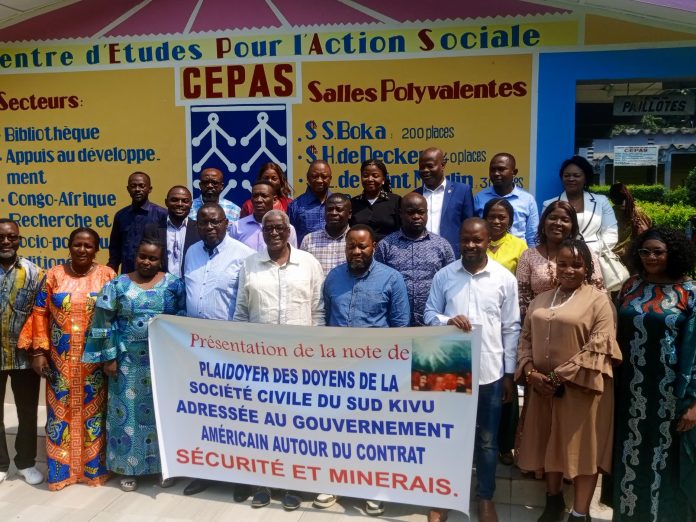Kinshasa, 18 juin 2025- Dans une déclaration lue, mercredi 18 juin, au cours d’un point de presse, à Kinshasa, les Doyens de la Société civile du Sud-Kivu ont présenté une note de plaidoyer adressée au gouvernement américain, centrée sur l’accord stratégique « minerais- sécurité” proposé par Kinshasa à Washington. Un appel puissant pour une paix durable, ancrée dans une vision lucide des défis internes et des responsabilités régionales. Ce deal est considéré comme une opportunité historique à ne pas rater.